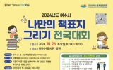 [한국저널뉴스]여수시는 오는 26일 이순신도서관에서 ‘2024 나만의 책 표지 그리기 전국대회’를 개최한다. 이번 대회는 여수시립도서관이 선정한 21권 도서 중 1권을 선택해 감상한 후 책 표지를 직접 재구성하여 그리는 대회로, 지역 제한 없이 전국의 초·중·고등학생 및 성인 누구나 참가할 수 있다. 참가를 희망하는 사람은 오는 22일까지 여수시립도서관 누리집에서 신청하면 되며, 선착순 300명 모집으로 마감된다. 시는 접수된 작품 중 총 32점을 선정해 여수시장상과 대상 30만 원, 으뜸상 20만 원, 버금상 10만 원, …