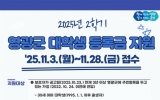 영광군 윤규진 기자2025. 10.23[한국저널뉴스](재)영광군미래교육재단(이사장 장세일)이 군민의 교육비 부담을 줄이고 지역의 미래 인재를 육성하기 위한 2025년 2학기 대학생 등록금 지원사업을 시행한다. 지원 기준은 ▲보호자가 공고일(2025. 10. 23.) 기준 3년 이상 영광군에 주민등록을 두고 있는 가정 ▲30세 이하 대학생 ▲직전 학기 12학점 이상 이수하고, 평균 70점(C학점) 이상 취득 등 요건을 충족하여야 한다. 지원 대상자로 선정되면, 해당 학기 등록금 중 실제 등록금 납부액 기준으로 최대 200만 원까지 지원받을 수 있다. 신청은 20…