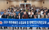 해남군 윤규진 기자2024. 09.26[한국저널뉴스]광주광역시체육회가 25일 국민생활관 세미나실에서 ‘광주체육인 소양 교육 및 장애인 인식개선 교육’을 실시했다. 이날 교육은 대동문화재단 조상열 대표를 강사로 초빙하여 시 체육회 임직원, 5개구 체육회 사무국장, 생활체육지도자를 비롯한 종목단체, 스포츠클럽 관계자 등 200여명이 참여했다. 교육은 ‘아는 만큼 보인다’라는 주제로 광주의 역사와 사회적 다양성에 대한 흐름을 알아가는 교육이 진행됐다. 체육인으로서 기본 소양을 비롯한 책임 의식을 확립하고 다양한 관점에서 바라보고 혁신할 수 있는 시간을 가졌다. 또…