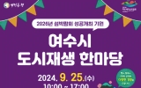 진도군 윤규진 기자2024. 09.19[한국저널뉴스]여수시는 오는 25일 여수문화홀에서 ‘2024 여수시 도시재생 한마당’ 행사를 개최한다고 19일 밝혔다. 시에 따르면 이번 행사를 통해 8개 도시재생 사업지구(광림·충무·종화·주삼·남산·문수·한려·국동)의 사업 추진 현황과 성과를 전시 및 영상을 통해 만나볼 수 있다. 또한 여수문화홀 앞 주차장에서는 도시재생 사업지구 주민협의체(조합)가 생산한 전통장류, 구운 갓 단풍쿠키, 초콜릿, 쑥밥알찰떡, 농산물꾸러미, 더치커피, 식혜, 장아찌, 비누 등 20여 종의 제품을 판매하는 벼룩시장(플리마켓)이 열린다. 행사장에서…