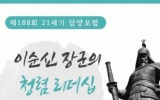문화 윤규진 기자2024. 09.05[한국저널뉴스] 인문학교육·전통정원 특구 담양군이 오는 11일 오후 4시 담빛농업관에서 군민을 위한 열린 강좌 ‘21세기 담양포럼’을 개최한다. 이번 강좌는 이정희 전 국민권익위원회 부위원장을 초청해 ‘이순신 장군의 청렴 리더십’에 관한 강연을 통해 삶의 지혜와 폭넓은 인문학적 소양을 함양하고자 기획했다. 이번 강연은 우리 민족 역사상 존경받는 대표적인 인물인 충무공 이순신 장군에 관한 이야기로, 어려운 상황 속에서도 한결같은 신념과 원칙으로 지켜낸 청렴이 갖는 의미를 이해하며 우리 삶의 변화를 끌어내는 계기가 될 것으로…