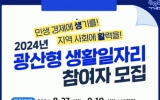 광주광역시 윤규진 기자2024. 08.27[한국저널뉴스]광주 광산구가 27일부터 오는 9월 10일까지 경력 단절 등 미취업자를 대상으로 대규모 생활 일자리 사업 참여자를 모집한다. 광산형 생활일자리는 광주 최초로 5억 원의 예산을 편성해 지역주민에게 일자리를 제공하고 참여자의 소득 보전, 소비활동 촉진 등 민생 경제에 활력을 도모하고자 마련했다. 모집 분야는 단순 인력 부족에 따른 반복과 다발성 생활민원을 해결하고 공공시설 개방 지원이나 녹지공간 관리 등 공공시설 이용 활성화에 도움을 주고자 4개의 분야로 구성했다. 4개의 분야는 △청소·제초 △공공시설 관리 △공간 …