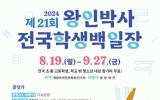 순천시 윤규진 기자2024. 08.04[한국저널뉴스]영암군이 8월19일부터 9월27일까지 ‘2024 왕인박사 전국학생백일장’을 개최한다. 이번 백일장은 고대 국제교류사의 정점이었던 백제 왕인박사를 기리고, 역사문화 콘텐츠 산업을 선도할 청소년 인재 발굴의 장. 왕인박사 전국학생백일장은 전국 초·중·고등학생과 학교밖청소년 누구나 무료로 참가할 수 있다. 백일장 주제는 영암의 자연·문화유산·추억이고, 글짓기·만화·영상 3개 부문에서 작품을 모집한다. 특히, 글짓기 중 사행시의 주제어는 ‘영암예찬’이다. 문화예술 전문가 4인의 심사를 거쳐 응모작품 중 초등…