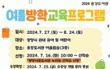 광양시 윤규진 기자2024. 07.12[한국저널뉴스]광양용강도서관은 오는 16일부터 23까지 광양시립도서관 누리집을 통해 ‘여름방학 교육 프로그램’ 수강생을 선착순 모집한다고 밝혔다. 이번 프로그램은 광양시 어린이(유아 6 부터 7세) 15명, 초등학생(1 부터 2학년) 30명을 대상으로 하며 7월 27일부터 8월 24일까지 진행된다. 프로그램은 ▲유아 6 부터 7세는 ‘Summer English A’ ▲초등학생 1 부터 2학년은 ‘Summer English B’ ▲유아 7세부터 초등학생 1 부터 2학년을 통합한 ‘Zero 환경지킴이’ 등 3가지 강좌로 구성했다. …