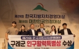 사회 윤규진 기자2024. 07.10[한국저널뉴스]전남 구례군이 지난 9일 고양시 킨텍스에서 열린 제29회 한국지방자치경영대상에서 ‘인구활력특별상’을 수상했다. 사)한국공공자치연구원에서 주최한 이번 시상식은 지방자치단체의 지역발전 성과를 평가하여 우수 사례를 장려하고 전파하기 위해 매년 개최되고 있다. 올해 시상식에는 더불어민주당 이개호 국회의원이 참석했으며, 이달곤 전 행정안전부 장관이 심사위원장을 맡아 더욱 성황리에 치러졌다. 이번에 구례군이 수상한‘인구활력특별상’은 전국 지자체 중 1개 지자체에만 주는 특별상으로, 인구 감소 문제를 해결하고 지역 경제를 활…