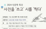목포시 윤규진 기자2024. 06.20[한국저널뉴스]목포시립도서관이 2024 인문학 강연 '사진을 쓰고 시를 찍다'를 오는 7월 4일부터 25일까지 매주 목요일 4회 운영한다. 강연은 길거리에 버려지고 방치된 것들을 사진으로 찍고 시로 쓴 ‘길에서 주워 온 시’의 저자 시인 미후지가 맡는다. 이번 강연은 시를 쓰고 싶지만 어렵게 느꼈던 사람들을 대상으로 일상 속에서 찾은 주제를 시로 창작하며 시가 어렵고 특별한 것이 아니라 누구나 쓸 수 있다는 것을 깨닫는 강연이 되어주리라 기대된다. '사진을 쓰고 시를 찍다'는 매 회차 다양한 시를 접해보고, 제시된 주제에 …