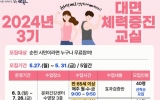 순천시 윤규진 기자2024. 05.16[한국저널뉴스]순천시는 시민들의 체력 향상을 위해 운영하고 있는 순천체력인증센터에서 오는 27일부터 31일까지 5일간 “체력증진교실 3기&효과검증반” 참가자를 모집한다고 밝혔다. 이번 기수는 기존 체력증진교실과 만 65세 이상 어르신을 대상으로 사전, 사후 체력측정을 통한 운동효과를 과학적으로 검증하는 효과검증반을 함께 운영할 예정이다. 이번 프로그램은 6월 3일부터 7월 26일까지 총 8주 동안 진행된다. 체력증진교실은 만 64세 이하를 대상으로 매주 월수금 오전 11시부터 40분간 진행될 예정이며, 효과검증반은 65세…