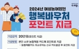 순천시 윤규진 기자2024. 04.24[한국저널뉴스]순천시는 여성농어업인 행복바우처 지원 대상자 6,713명을 선정하고, 문화 · 복지에 사용 가능한 행복바우처 20만원을 지원한다. 시는 매년 선불형 기프트 카드를 지급했던 방식에서 올해부터는 본인 명의 농협카드에 포인트 충전 방식으로 지급 방식을 변경한다. 기존의 선불형 기프트카드 지급 방식은 매년 신규 발급을 위해 금융기관을 방문해야 하는 번거로움이 있었으나, 포인트 지급 방식 변경으로 그간의 불편사항이 해소되었을 뿐만 아니라 카드 사용액, 잔액 등 알림 문자서비스도 제공받을 수 있다. 농협카드를 소유하지 않은…