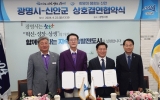 경제 윤규진 기자2024. 04.24[한국저널뉴스]신안군은 지난 22일 광명시청 회의실에서 상호 교류와 협력으로 공동 발전을 도모하기 위한 ‘신안군↔광명시 자매결연 협약’을 체결했다고 밝혔다. 협약식에는 박우량 신안군수와 박승원 광명시장, 김혁성 신안군의회 의장과 안성환 광명시의회 의장, 시·군의회 의원 등 50여 명이 참석한 가운데, 양 자치단체는 예술․문화․행정 등 다양한 분야에서 교류의 폭을 넓히고, 지역축제와 각종 행사 시 지역특산물 홍보 및 판매, 문화 체험 교류로 상생 발전할 수 있는 협력 네트워크를 구축하기로 했다. 특히, 신안군에 광명시의 연수원 건…