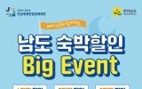 완도군 윤규진 기자2024. 04.15[한국저널뉴스]전라남도는 관광객 유치와 지역관광 활성화를 위해 ‘남도 숙박할인 빅이벤트’ 사업을 시군과 함께 본격 추진한다고 밝혔다. 지원 대상은 전남, 광주 외 주소지를 둔 관광객이다. 10만 원 이상 결제는 4만 원, 7만 원 이상은 3만 원, 7만원 미만은 2만 원을 할인한다. 전남 사랑애(愛) 서포터즈 회원은 할인금액에 더해 1만 원 추가 할인이 적용된다. 전남 생산품 판매 촉진 및 전남 관광 활성화 등을 홍보하는 전남 사랑애(愛) 서포터즈(현재 45만 명)는 전남에 주소를 두지 않은 전남 향우라면 누구든지 가입(전남관광…