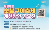 광양시 윤규진 기자2024. 04.12[한국저널뉴스]광양시 광양읍은 4월 12일부터 5월 10일까지 광양전통숯불구이축제 개선방안을 주제로 대국민 공모전을 연다고 밝혔다. 공모전은 숯불구이축제에 관심 있는 국민 누구나 참여할 수 있으며, 1인 2건 이내로 제출하면 된다. 주제는 광양전통숯불구이축제 개선방안으로, 전통숯불구이와 관련된 차별화 프로그램, 실현가능성 높고 관광객이 함께 참여할 수 있는 프로그램, 효과적인 축제 개최 시기, 축제장 구성 방안, 축제를 통한 지역경제 활성화 방안 등에 대한 아이디어를 자유롭게 제안하면 된다. 신청은 포스터 QR코드를 활용하거…