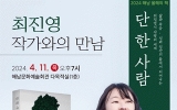 해남군 윤규진 기자2024. 03.27[한국저널뉴스]해남군립도서관은 다음달 11일‘2024 해남 올해의 책’문학부문 선정도서인 '단 한 사람'의 저자 최진영 작가를 초청해 작가와의 만남을 갖는다. 최진영 작가는 2006년 실천문학으로 등단해 '단 한 사람'을 비롯해 스테디셀러 '구의 증명' '해가 지는 곳으로' '당신 옆을 스쳐간 그 소녀의 이름은' 등을 발표했다. '홈 스위트 홈'으로 2023 이상문학상 대상을 수상하며 현재 가장 각광받는 소설가로 꼽히고 있다. 이번 만남의 자리에서는 '단 한 사람' 집필 동기와 집필 과정에서의 에피소드에 대해 깊이 있는 …