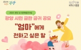광양시 윤규진 기자2024. 03.21[한국저널뉴스]광양문화도시센터는 오는 4월 19일까지 ‘엄마에게 전하고 싶은 말’을 주제로 시민글판 글귀를 공모한다. 2021년부터 시작된 ‘광양 시민글판 글귀 공모’는 매년 3 부터 4회 주제를 정해 시민들을 대상으로 공감과 감동이 있는 창작 글귀를 모집하고 전시해왔다. 올해는 총 3회에 걸쳐 진행할 예정이다. 이번 글귀 공모는 ‘엄마에게 전하고 싶은 말’을 주제로 진행되며, 광양시를 생활권으로 둔 시민이라면 누구나 참여할 수 있다. 관심있는 시민은 이달 20일부터 4월 19일 오후 2시까지 네이버폼을 통해 참여하면 된다.…