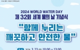 담양군 윤규진 기자2024. 03.21[한국저널뉴스]광양시는 UN이 정한 ‘세계 물의 날(3월 22일)’을 맞아 오는 23일 오전 10시에 마동저수지생태공원에서 민간환경단체협의회와 함께 ‘제32회 세계 물의 날’ 기념행사를 개최한다. 기념행사는 ‘함께 누리는 깨끗하고 안전한 물’이라는 주제로 물의 소중함을 알리고 깨끗한 물 관리로 안전한 물을 모두가 함께 이용하기 위한 실천을 유도하기 위해 마련됐다. 이날 행사는 시민, 환경단체, 1사1하천운동추진협의회 등 300여 명이 참석한 가운데 수질개선 유공자(3명) 표창, 물 환경 퀴즈대회, 마동저수지생태공원 주변 환경정화…
