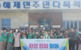 무안군 윤규진 기자2024. 03.18[한국저널뉴스]무안군 해제면 새마을부녀회(회장 김기옥)는 지난 15일 50여 명의 회원들이 참석한 가운데 대대적인 새봄맞이 환경정화 활동을 실시했다. 이번 정화활동은 평소 주민들의 이용이 많은 주요 이면도로와 주민다목적센터 주변을 집중적으로 전개했으며, 각종 생활 쓰레기 및 방치된 영농폐기물 등을 수거했다. 김기옥 회장은 “환경정화 활동에 동참해 주신 회원들에게 감사드린다”며, "앞으로도 지속해서 지역 환경을 위해 최선을 다하겠다"고 말했다. 안진영 해제면장은 “쾌적한 환경조성을 위해 솔선수범으로 참여해 주신 새마을부녀회의 노…