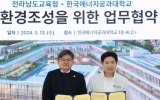 교육 윤규진 기자2024. 03.13[한국저널뉴스]전라남도교육청과 한국에너지공과대학교이 오는 5월 여수에서 열리는 ‘2024 대한민국 글로컬 미래교육박람회’성공개최와 미래교육 환경조성 협력을 위해 맞손을 잡았다. 두 기관은 13일 한국에너지공과대학에서 김대중 교육감과 박진호 켄텍 총장직무대행 등이 참석한 가운데 업무협약을 맺고, 전남의 미래교육 환경을 조성하는 데 협력하기로 했다. 협약에 따라 두 기관은 △ 미래교육을 위한 교육환경 조성사업 추진 △ 미래교육환경 활용 역량 강화를 위한 학교 관리자 및 교원 연수 지원 △ 미래교육 환경조성과 교육지원을 위한 협의체 …