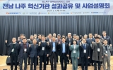 장성군 윤규진 기자2024. 03.11[한국저널뉴스]전라남도 나주시와 한국전력공사 상생생태계조성처는 최근 나주 혁신산단에 위치한 에너지신기술연구원에서 ‘나주 강소특구사업 성과공유 및 사업 설명회’를 개최했다고 11일 밝혔다. 설명회는 나주시, 한국에너지공과대학교, 전남테크노파크, 녹색에너지연구원, 에너지밸리기업개발원, 에너지밸리산학융합원 등 지역 혁신기관 및 기업들의 지난해 사업 성과와 올해 사업 계획을 공유하고 사업 참여를 유도하고자 마련됐다. 강소연구개발특구는 지역에 위치한 주요 거점 기술핵심기관을 중심으로 소규모·고밀도 집약 공간을 연구개발(R·D)특구로 육성…