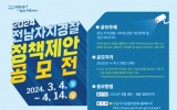 전라남도 윤규진 기자2024. 03.10[한국저널뉴스]전라남도자치경찰위원회가 도민 의견을 반영한 지역 맞춤형 치안 서비스를 위해 오는 4월 14일까지 ‘전남자치경찰 정책 제안 공모전’을 개최한다. 응모 분야는 ▲생활안전 ▲여성·청소년·아동·노인·장애인 등 사회적 약자 보호 ▲교통안전 ▲지역 경비 등 일상의 치안 서비스다. 전남도민이면 누구나 응모할 수 있다. 주소지가 전남이 아닌 경우에도 전남사랑애(愛) 서포터즈 가입을 통해 전남사랑도민증을 발급받으면 참여 가능하다. 제안서를 작성해 전남자치경찰위원회 누리집 도민정책제안 게시판에 등록하거나 담당자 이메일로 송부하면 된…