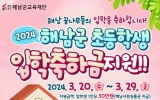 함평군 윤규진 기자2024. 03.06[한국저널뉴스]해남군이 초등학교 입학생들을 위한 입학 축하금을 지원한다. 대상은 올해 초등학교를 입학한 신입생으로 각 30만원을 해남사랑상품권으로 지급한다. 집중 신청기간은 3월 20일부터 29일까지 주소지 읍면사무소에서 방문 신청하며, 신청기간을 놓친 경우 해남군 교육재단으로 직접 방문 신청하면 된다. 입학일 기준 해남군에 주소를 두고 초등학교에 최초 입학한 학생으로, 입학생의 친권자 또는 사실상 양육하고 있는 보호자가 신청할 수 있다. 해남군 이외 지역에서 입학한 후 관내 초등학교로 전학 온 경우는 지원 대상에서 제…