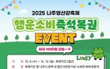 영광군 윤규진 기자2025. 10.01[한국저널뉴스]전라남도 나주시가 ‘2025 나주영산강축제’를 찾는 시민과 관광객들에게 특별한 즐거움과 함께 지역 상권 활력을 불어넣기 위해 ‘행운 소비 즉석 복권 이벤트’를 진행한다. 나주시(시장 윤병태)는 오는 10월 8일부터 12일까지 열리는 영산강축제에서 축제 방문객들이 지역 상권에서 소비하면 즉석 복권을 통해 나주사랑상품권을 받을 수 있는 이벤트를 마련했다고 1일 밝혔다. 이번 이벤트는 경기침체로 어려움을 겪고 있는 소상공인의 경영 안정과 골목상권 활성화를 위해 기획했다. 축제 기간 나주시 5개 권역(빛가람동, 남평읍,…