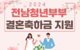 장성군 윤규진 기자2024. 02.18[한국저널뉴스]전라남도는 청년의 결혼 초기 경제적 부담을 덜어주고 지역 정착을 유도하기 위해 총 100억 원 규모의 청년부부 결혼축하금을 지원한다고 밝혔다. 청년부부 결혼축하금 지원은 전남도가 2021년 전국 광역시·도 중 최초로 시행한 사업으로, 49세 이하 부부가 대상이다. 혼인신고 후 6개월이 경과한 날부터 신청할 수 있다. 신청일 직전까지 부부 모두 전남에 6개월 이상 계속 주소를 두고 거주해야 한다. 다만 부부 중 누구라도 이전에 청년부부 결혼축하금을 수령한 경우 지원 대상에서 제외된다. 전남도는 올해부터 신청 기간을 …