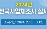 문화 윤규진 기자2024. 02.13[한국저널뉴스]영암군이 통계청과 2월 16일부터 3월 12일까지 ‘2024년 전국사업체조사’를 실시한다. 전국사업체조사는 전국 모든 사업체의 지역별 분포와 고용 구조 등을 파악하기 위한 대규모 전수 통계조사다. 조사대상은 2023년 12월 31일 현재, 영암군에서 산업활동을 수행하고 있는 모든 사업체 9,077개소다. 조사항목은 총 9개 항목으로 사업체명, 대표자명, 조직 형태, 종사자 수, 연간매출액 등이다. 조사는 조사원이 사업체를 방문해 조사하는 현장 면접조사를 원칙으로 진행하고, 전화조사와 배포조사도 병행한다.…
