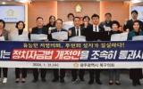 장성군 윤규진 기자2024. 01.31[한국저널뉴스]광주 북구의회는 31일 광주광역시의회 및 자치구의회와 공동으로 정치자금법 개정안의 국회 본회의 통과를 촉구하는 성명서를 발표했다. 북구의회 의원들은 성명서를 통해 “1991년 지방자치제가 부활된 이후 지방의회 의원들은 주민들의 삶의 질 향상과 지역발전을 위해 묵묵히 역할을 수행해 왔지만 의정활동에 부족한 경비를 자체적으로 마련해야 하는 어려움을 겪어왔다“며 “2022년 11월 헌법재판소는 ‘국회의원에게는 개인 후원회를 구성할 수 있도록 하면서 지방의원 개인 후원회 구성을 금지한 현행 정치자금법 조항에 대해 위헌 판…