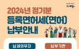 순천시 윤규진 기자2024. 01.12[한국저널뉴스]순천시는 1월 1일 현재 면허 소지자를 대상으로 2024년 정기분 등록면허세(면허) 29,937건 647백만원을 부과했다고 밝혔다. 등록면허세(면허)는 각종 법령에 규정된 면허·허가·인가·등록 등 특정한 영업설비 또는 행위에 대한 권리의 설정, 금지의 해제 또는 신고의 수리 등 행정행위에 부과되는 세금이다. 정기분 등록면허세는 매년 1월 1일(과세기준일) 현재 면허를 소지하고 있는 사람 또는 법인에게 부과된다. 시는 지난해에 면허를 신규 취득하거나 변경할 때 수시분으로 등록면허세를 납부했더라도, 이번 등록면허세…