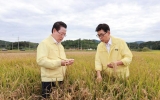 의회 윤규진 기자2025. 09.26[한국저널뉴스] 보성군(군수 김철우)은 26일 최근 이어진 고온·다습한 기후로 벼 깨씨무늬병 발생 면적이 급증함에 따라 긴급 대응에 나섰다. 이날 김철우 보성군수와 김영록 전라남도지사, 보성군의회 김경열 의장, 김행란 전라남도농업기술원장, 농협경제지주 전남본부 김성모 부본부장, 문병완 보성농협조합장과 관내 조합장 등은 미력면 피해 현장을 직접 살피고 지역 농업인들을 만나 애로사항을 청취하고 해결 방안을 모색했다. 보성군농업기술센터 조사 결과, 2025년 보성군 벼 깨씨무늬병 발생 면적은 985㏊로 지난해(259㏊…