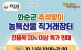 광양시 윤규진 기자2025. 09.24[한국저널뉴스]화순군은 추석을 맞아 10월 1일과 2일 이틀간 광덕문화광장에서 ‘추석맞이 농·특산물 직거래장터’를 개최한다고 밝혔다. 이번 장터에는 화순팜 우수 입점업체 30개가 참여하며, 업체 자체 할인과 더불어 군에서 20% 할인 지원을 추가로 제공해 군민들은 최소 20% 이상, 일부 품목은 최대 40%까지 저렴하게 지역 농·특산물을 구매할 수 있다. 또한, 화순사랑상품권 결제도 가능해 명절 장바구니 부담을 크게 줄일 수 있을 것으로 기대된다. 장터는 10월 1일 오전 10시부터 저녁 9시 야시장까지 운영되며, 10월 2…
