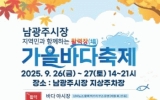 동구 윤규진 기자2025. 09.24[한국저널뉴스]광주 동구는 오는 26~27일 이틀간 남광주시장 공영주차장 일원에서 ‘활력장! 가을 바다 축제’를 개최한다고 밝혔다. 남광주시장 문화관광형시장 육성사업 일환으로 열리게 된 이번 행사는 광주 대표 수산물시장인 남광주시장을 전국에 알림과 동시에 지역 대표 축제로 육성하기 위해 마련됐다. 26일 오후 2시부터 농악놀이, ‘수산물 가요제’ 예선전, 전어잡이 체험 등 식전 행사가 펼쳐지며, 오후 5시 개막식을 시작으로 본격적인 행사가 열린다. 오후 6시부터는 가을 별미가 가득한 ‘바다 야시장’을 운영, 시민들의 발길…
