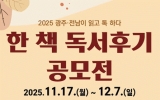 전라남도 윤규진 기자2025. 11.18[한국저널뉴스]전남대학교 도서관은 11월 17일부터 12월7일까지 ‘2025 한 책 독서후기 공모전’을 진행한다. 이번 공모전은 ‘광주·전남이 읽고 톡 하다’사업의 일환으로, 올해의 한 책으로 선정된 김애란 작가의 『이중 하나는 거짓말』을 읽고 독서의 의미를 나누고 서로 다른 생각을 공유하기 위한 취지로 마련됐다. 공모전에는 전남대학교 재학생뿐만 아니라 광주·전남 지역민 누구나 참여할 수 있다. 자세한 사항은 전남대학교 도서관 홈페이지 공지사항을 참고하면 된다. 전문가 심사를 통해 최우수·우수·장려 등 각 부문별 수상자를…