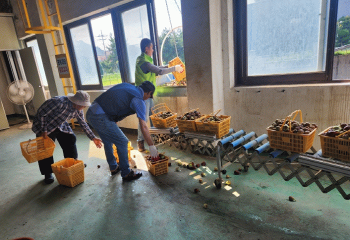 일정 비용을 지급하는 기존 유상 수매 방식에서 2024년부터 ‘무상 처리 작업단’ 방식으로 전환한 영암군은, 14명을 채용해 무화과 수거·분류·계측·운반·기기운용 등 폐기 작업 전반을 맡긴다.