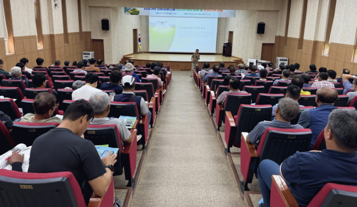 이번 교육은 폭염과 고온으로 비래해충 발생이 지난해보다 보름 이상 빨라지는 등 7~8월 공동방제 기간에 벼멸구, 혹명나방 등 철저한 예찰 및 피해 예방과 동시에 인증기준에 적합한 공동방제 이행을 위해 진행됐다.