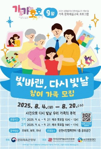 ‘가가호호’는 문화체육관광부가 주최하고 한국문화예술교육진흥원과 순천문화재단이 주관하는 사업으로, 순천문화재단은 가족 간 이해를 높이고 건강한 가족 여가문화를 만들기 위해 연중 5개의 가족 문화예술교육프로그램을 운영하고 있다.