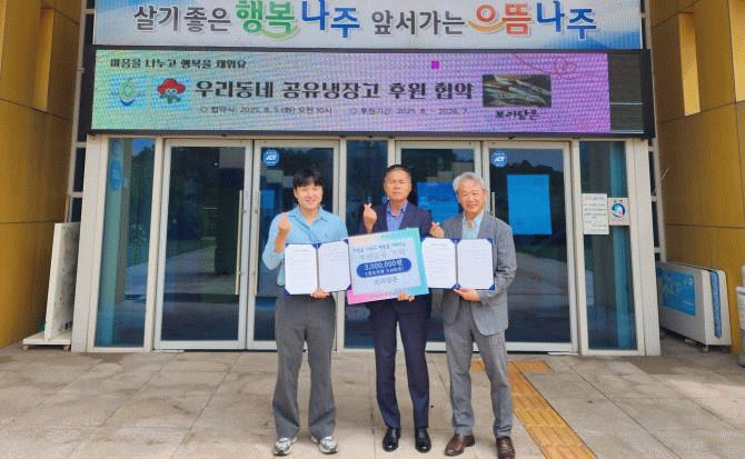 김귀남 빛가람동장은 “김희명 대표님의 이웃을 생각하는 따뜻한 마음에 깊이 감사드린다”며 “빛가람동 공유냉장고가 단순한 기부를 넘어 공동체 정신 확산의 중심 역할을 하도록 적극 관리하겠다”고 말했다.