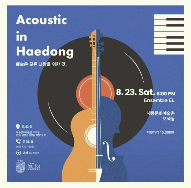 관람료는 1만 원이며, 담양군민과 일부 대상은 할인 적용을 받을 수 있다. 예매는 티켓링크에서 ‘담양’ 또는 ‘어쿠스틱 인 해동’을 검색하면 된다.