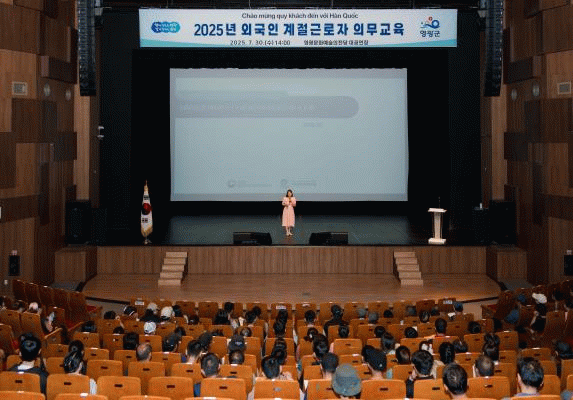 이날 교육은 외국인 계절 근로자들이 한국의 생활환경과 근로 여건에 원활히 적응하고, 여름철 폭염으로 인한 온열 질환 피해를 예방하기 위해 마련됐다.