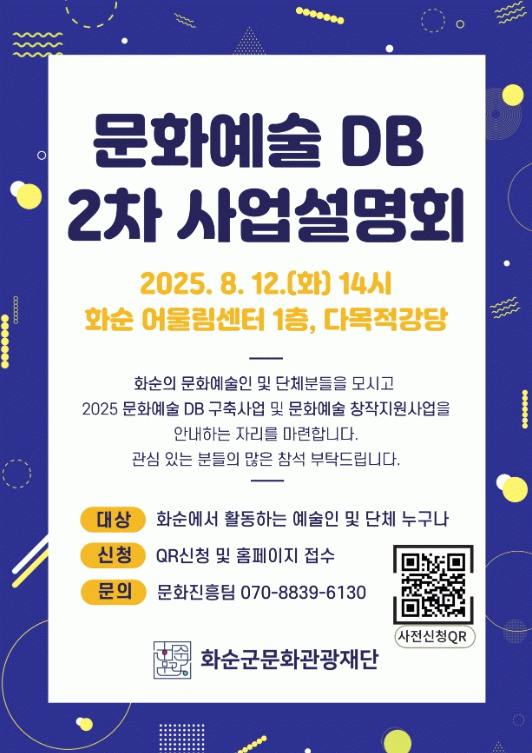 이번 2차 설명회는 더욱 폭넓은 예술인의 참여를 독려하기 위해 마련됐으며, 문화예술인 DB 구축 현황 및 향후 계획, 그리고 ‘2025 문화예술 창작지원사업’의 주요 내용이 함께 소개될 예정이다.