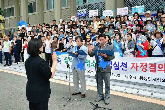 이날 결의대회에는 음식·숙박업주 200여 명이 참석해 ▲밝은미소와 상냥한 말투로 손님 맞이 ▲정직한 가격 실천 ▲쾌적한 휴식환경 제공 등 실천 항목을 담은 결의문을 채택·낭독하며 여수 음식·숙박업계의 자정 의지를 대외적으로 밝혔다.