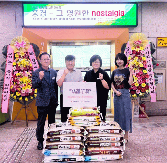 조갑부 작가는 “작은 나눔이지만 주변의 어려운 이웃에게 도움이 되길 바라는 마음으로, 개인전을 축하해 주신 분들의 뜻을 담아 쌀을 기부하게 됐다”고 말했다.