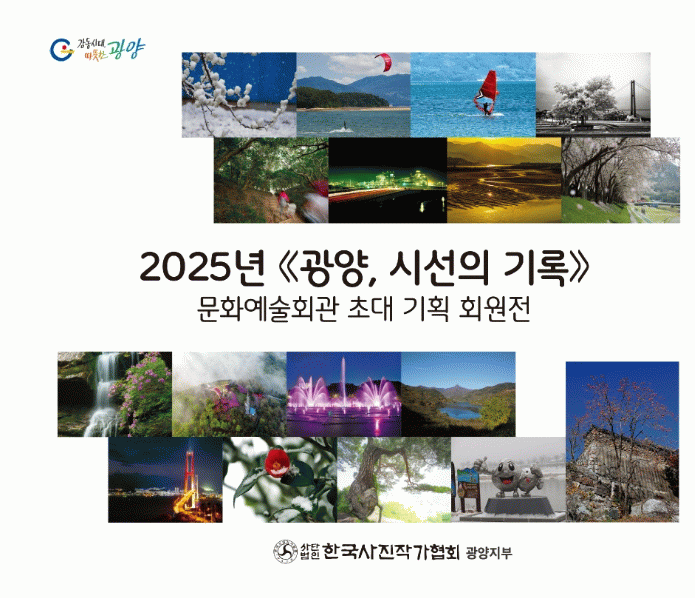 이번 전시는 올해 두 번째로 열리는 문화예술회관 기획초대전으로, (사)한국사진작가협회 광양지부 회원 20명이 참여해 ‘광양, 시선의 기록’을 주제로 사진 작품 60점을 선보인다.