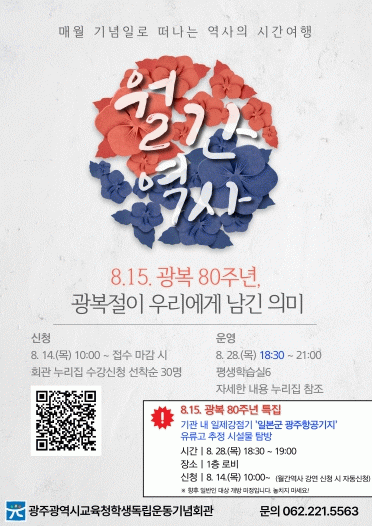 참여 신청은 오는 28일 오후 2시까지 학생독립운동기념회관 누리집에서 선착순 30명까지 접수 받는다. 참가비는 무료다.