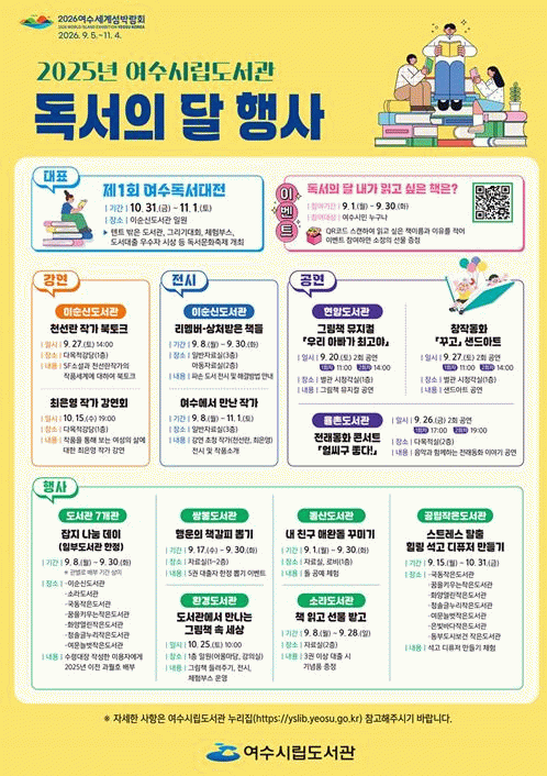 행사 세부 내용과 참여 방법은 여수시립도서관 누리집 공지사항에서 확인할 수 있다.