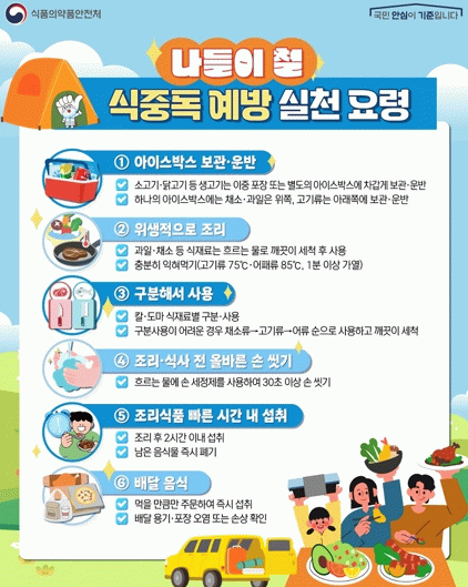 가을철은 일교차가 크고 식중독 발생 가능성이 높은 시기로, 살모넬라균과 병원성대장균 감염 우려가 높다. 이를 예방하기 위해 육류는 75℃ 이상에서 충분히 익히고, 채소류는 물로 3회 이상 세척하는 등 조리과정에서 주의가 필요하다.