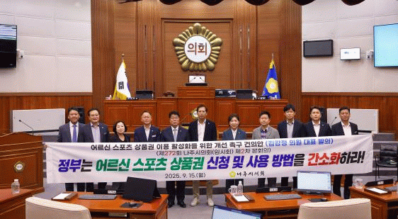 나주시의회는 이번 건의안을 통해 ▲어르신 스포츠 상품권 신청 절차 간소화 ▲실물 카드형 상품권 등 다양한 사용 방식 도입을 촉구했다.