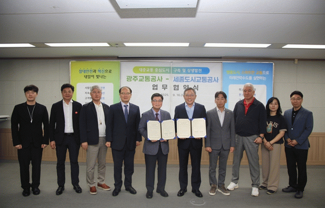 세종도시교통공사 도순구 사장 역시 “세종과 광주는 대중교통 중심 도시로 성장하고 있는 만큼, 양 기관이 힘을 모으면 지속 가능한 도시 교통 환경 조성을 크게 앞당길 수 있을 것”이라며, “교통 운영 전문 기관으로서의 선도적 역할에 최선을 다하겠다”라고 말했다.