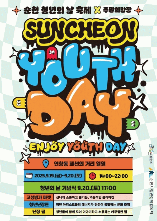 시 관계자는 “2025년 순천 청년의 날 축제는 청년이 주체가 되어 기획하고 참여하는 축제인 만큼, 많은 청년과 시민이 참여하여 청년 대표 축제가 됐으면 좋겠다”며, “올해 청년의 날은 주말의광장과 연계해 청년들이 마음껏 즐기고 소통할 수 있는 축제가 되길 기대한다”고 말했다.
