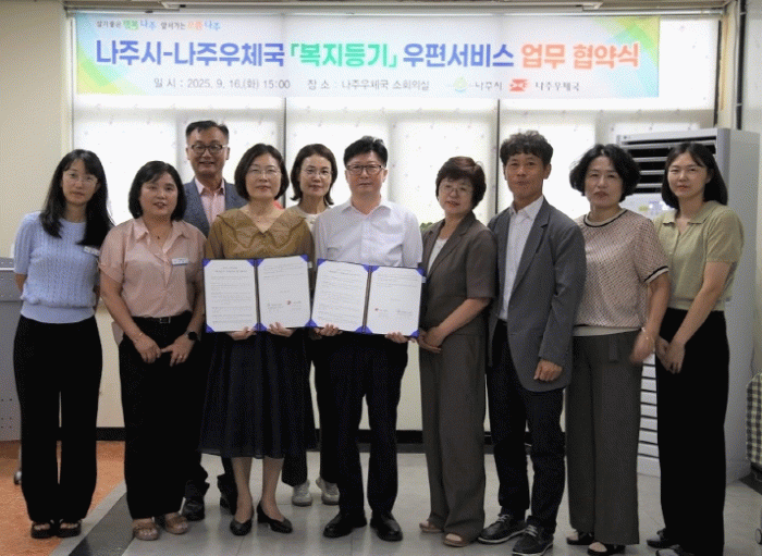 나주시는 지난 16일 나주우체국장실에서 ‘복지등기 우편서비스 업무협약’을 체결했다고 17일 밝혔다.