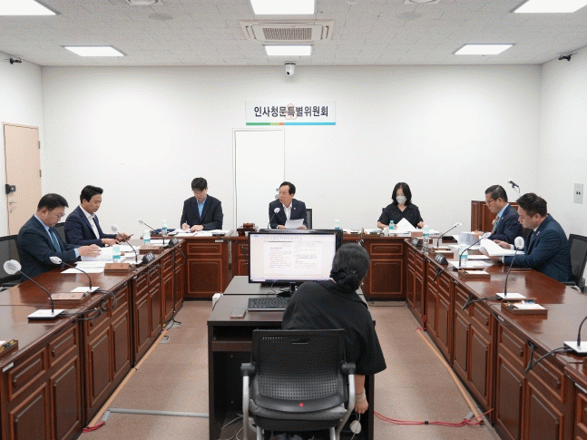 이날 김광수 위원장, 은봉희 부위원장, 박용화, 김경묵, 신종혁 위원이 후보자를 상대로 직무수행 능력 등 다양한 분야에 걸쳐 심도있는 질의를 이어갔다.